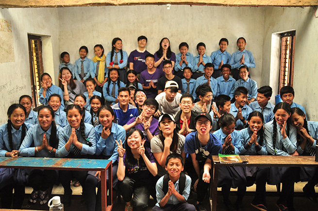 | Besides teaching local Nepalese kids, the students also help rebuild the school. |