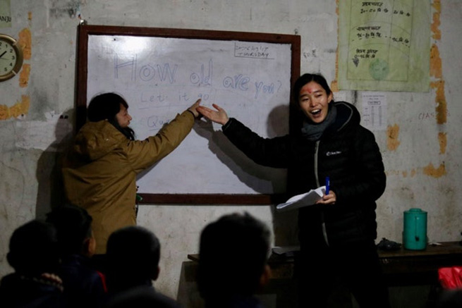 The CityU Nepal Volunteer Service Team led students into mountain schools to serve as volunteer teachers, bringing different learning experiences and inspirations to the enthusiastic local students in the classrooms with scarce resources. In the process of their teaching, Hong Kong students immediately felt the sharp contrast between the mountainous areas with limited resources and affluent Hong Kong with abundant of resources. The service team members needed to develop appropriate and interesting teaching content and utilized whatever was available there (the natural lighting, a blackboard, a few pieces of chalk and some simple self-made teaching materials) to impart their knowledge to local school kids creatively.