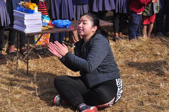 Kate, who is a 3rd year BA Linguistics and Language Applications student, planned to go travelling in sem-break. After she received the leaflet from CityU Student Development Services, she decided to try to enrol on the service trip for giving herself some challenges. Lamjung was the destination and was an unknown spot to her. “What I imagined was a dusty and poor hygiene place which was a mistake. Compared to the densely-populated Kathmandu, the village we were in was very nice and beautiful, situated in the Protected Areas (of Nepal),” stated Kate. |