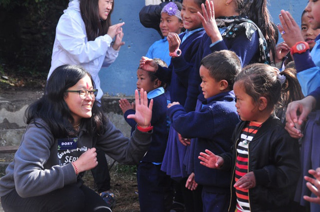 | Lamjung was seriously damaged from the earthquake in 2015. 20 participants who joined the service trip had to live in an environment without Wifi, shower and steady power supply for a week and to help to re-build school facilities. For Kate, the language barrier was more a challenge than the simple living environment: “In the handicraft workshop, we adopted a big-group teaching's setting. However, there was a communication problem: we could not give instructions properly and so they could not follow our instructions and demonstration. Seeing this, we immediately changed to a small-group setting, accompanying with body language, we finally delivered the workshop successfully.” By preparing the workshop, Kate learnt the importance to observe carefully and responding quickly. She also understood that communication is not limited to verbal but can be by various means. |